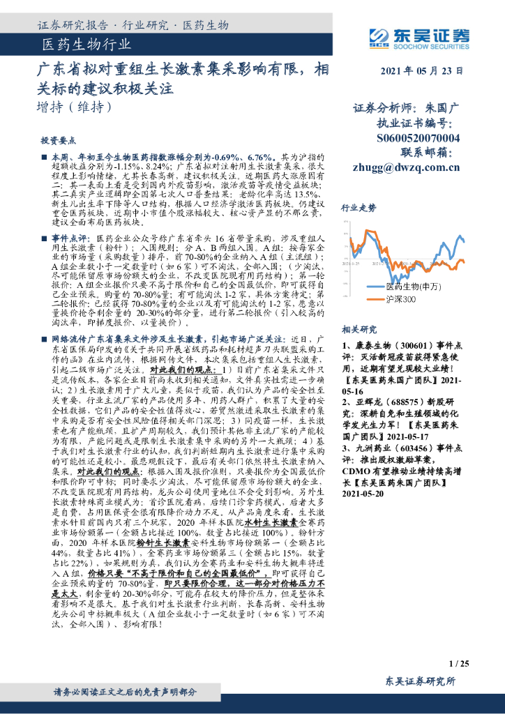 东吴证券:医药生物行业:广东省拟对重组生长激素集采影响有限,相关标的建议积极关注.pdf