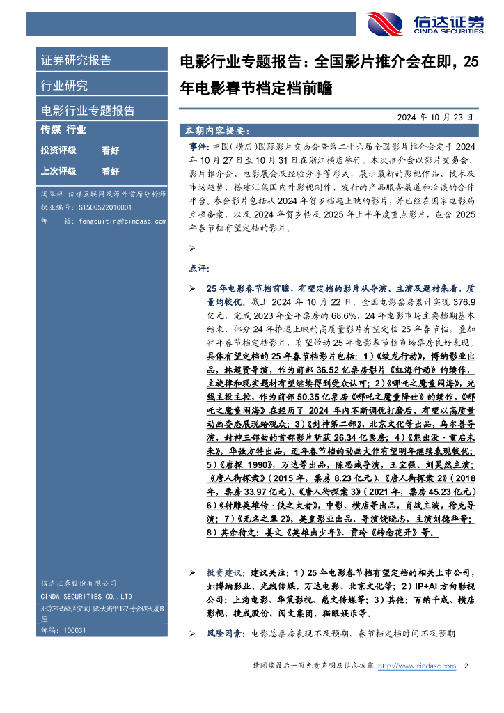 信达证券:电影行业专题报告:全国影片推介会在即,25年电影春节档定档前瞻.pdf