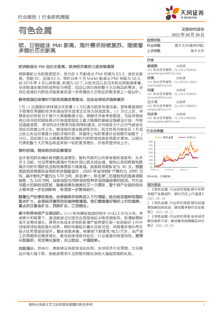 天风证券:有色金属行业研究周报:欧、日制造业PMI新高,海外需求持续复苏,继续看多铜价历史新高.pdf