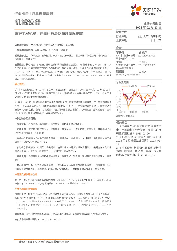 天风证券:机械设备行业研究周报:看好工程机械、自动化板块及海风漂浮赛道.pdf