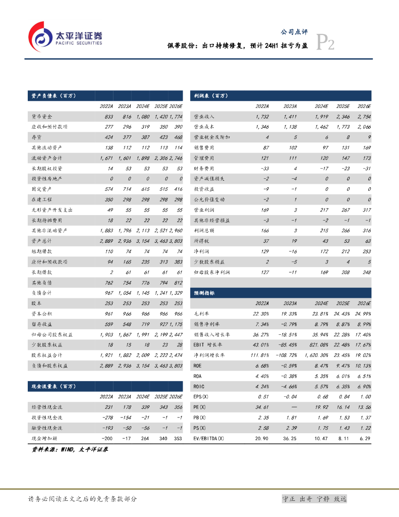 太平洋证券:佩蒂股份:出口持续修复,预计24H1扭亏为盈.pdf