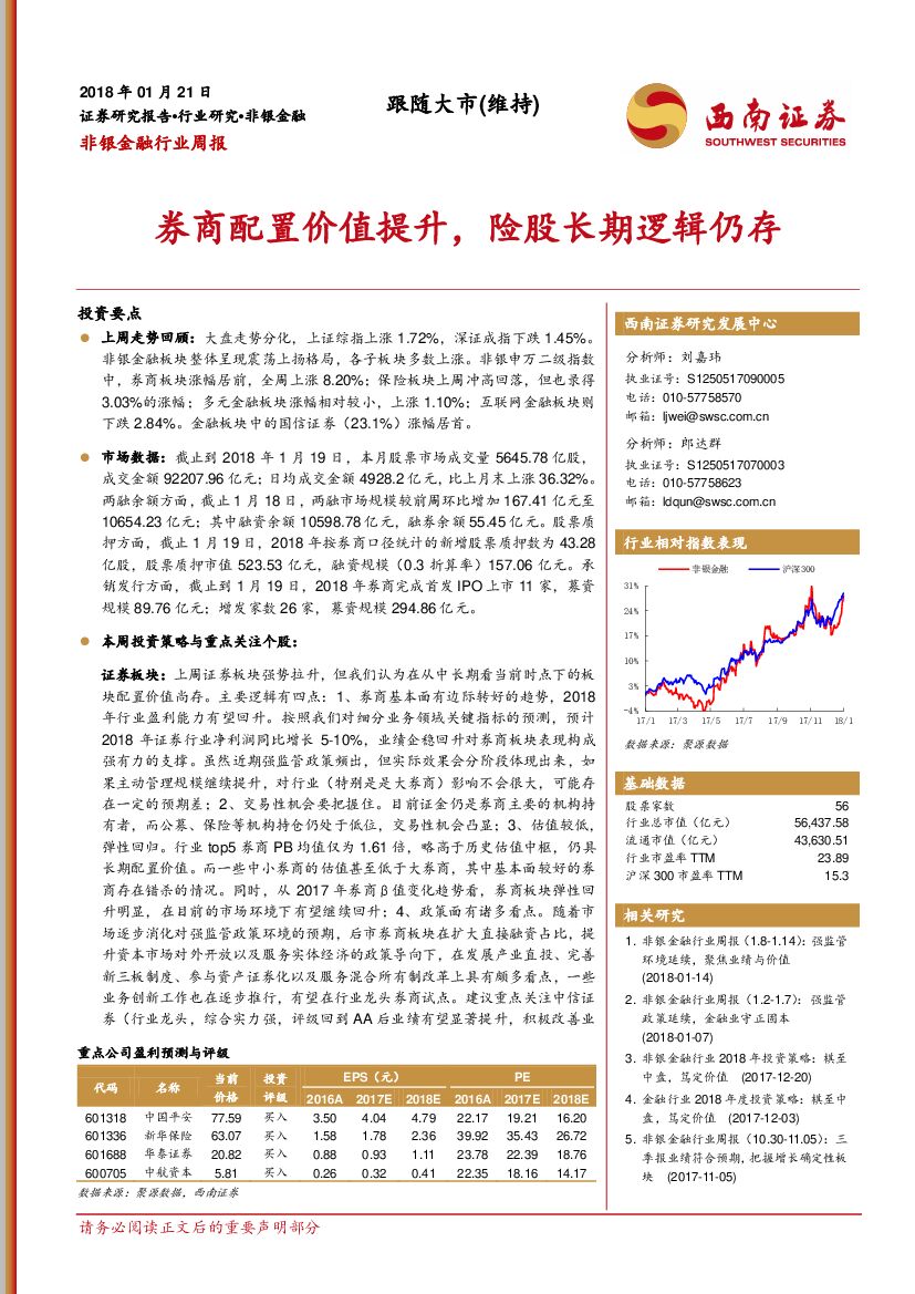 西南证券:非银金融行业周报:券商配置价值提升,险股长期逻辑仍存.pdf