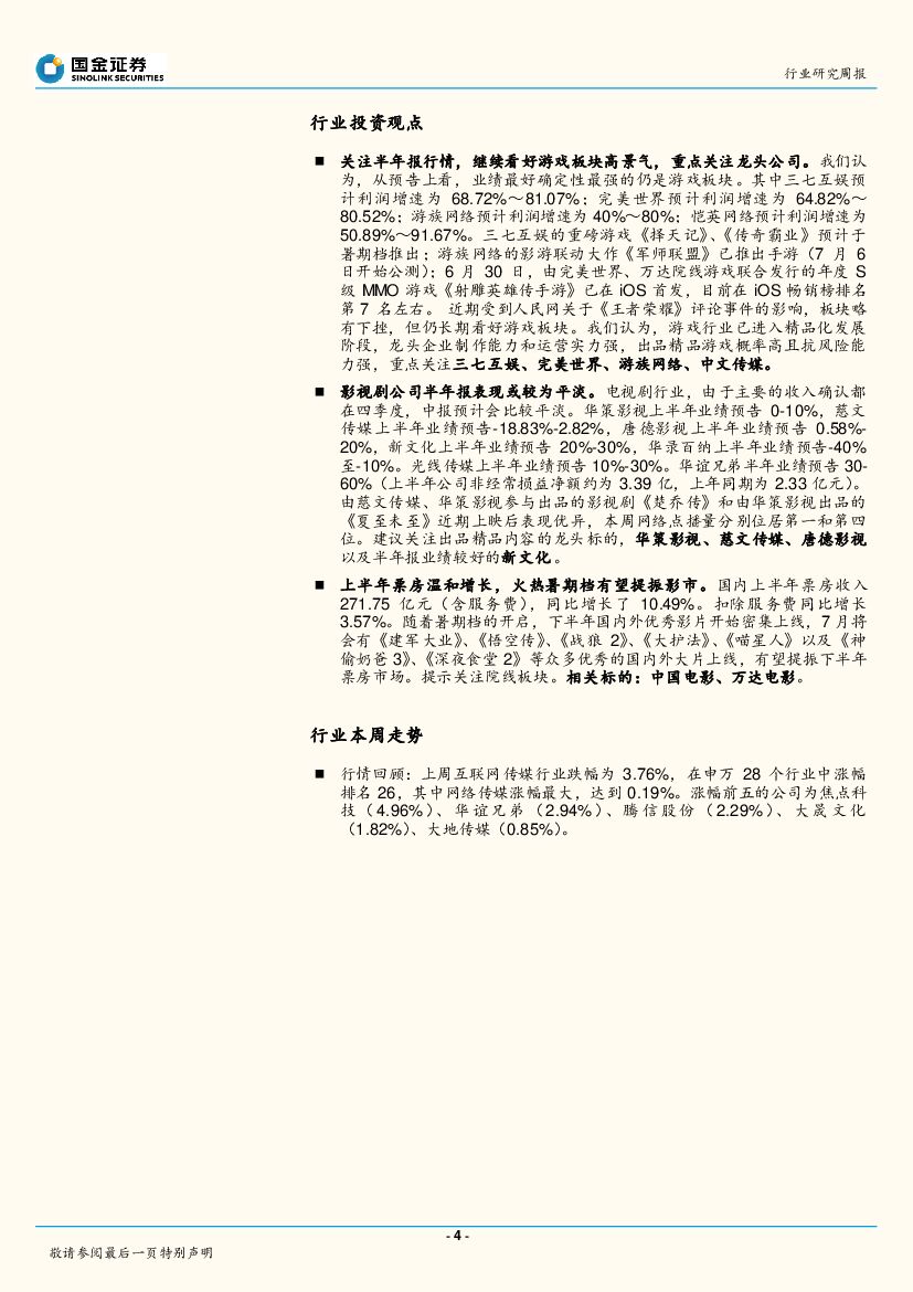 国金证券:传媒互联网产业行业研究:边走边看,等待机会