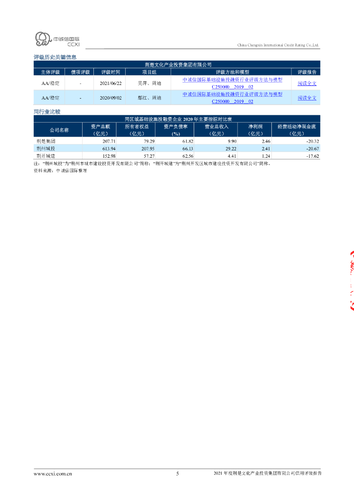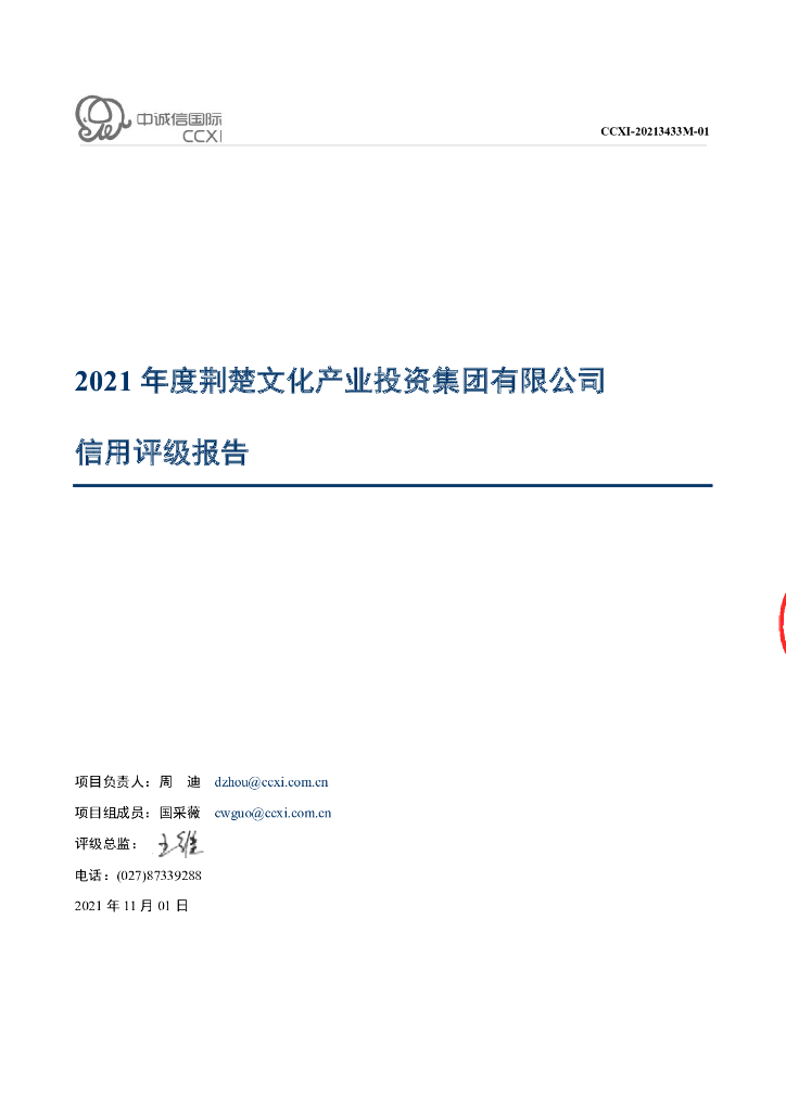中诚信:荆楚文化产业投资集团有限公司主体信用评级报告及跟踪评级安排.pdf