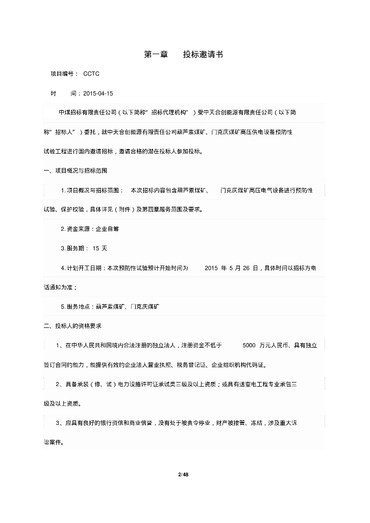 电气预防试验招标文件(中天合创能源有限责任公司).pdf