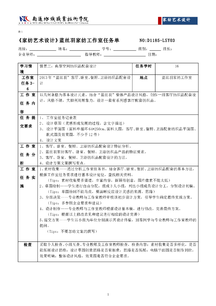 《家纺艺术设计》任务工单-情境三工作室任务单.pdf
