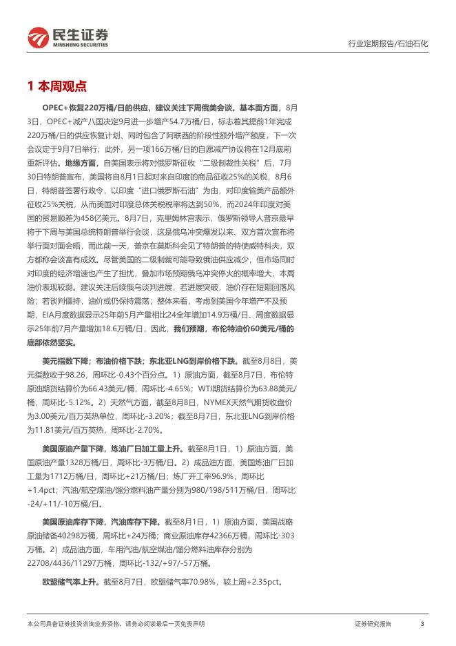 民生证券:石化周报:OPEC+恢复220万桶/日的供应,建议关注下周俄美会谈.pdf