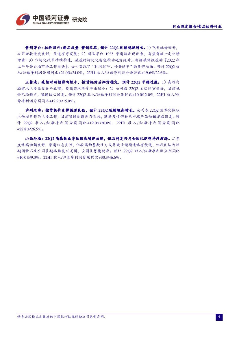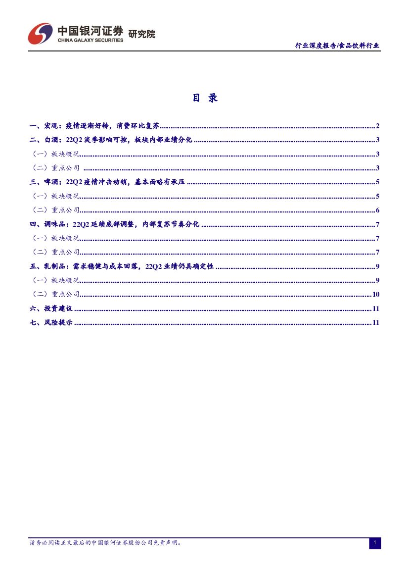 中国银河:食品饮料行业2022年中报业绩前瞻:Q2业绩短期承压,H2有望环比改善.pdf