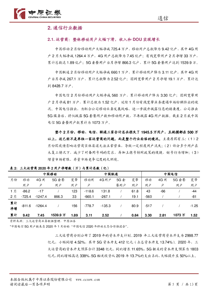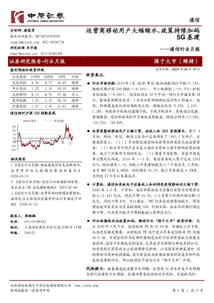 中原证券:通信行业月报:运营商移动用户大幅缩水,政策持续加码5G基建.pdf