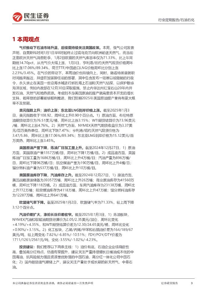 民生证券:石化周报:气价上涨和美国政策推动石油市场升温.pdf