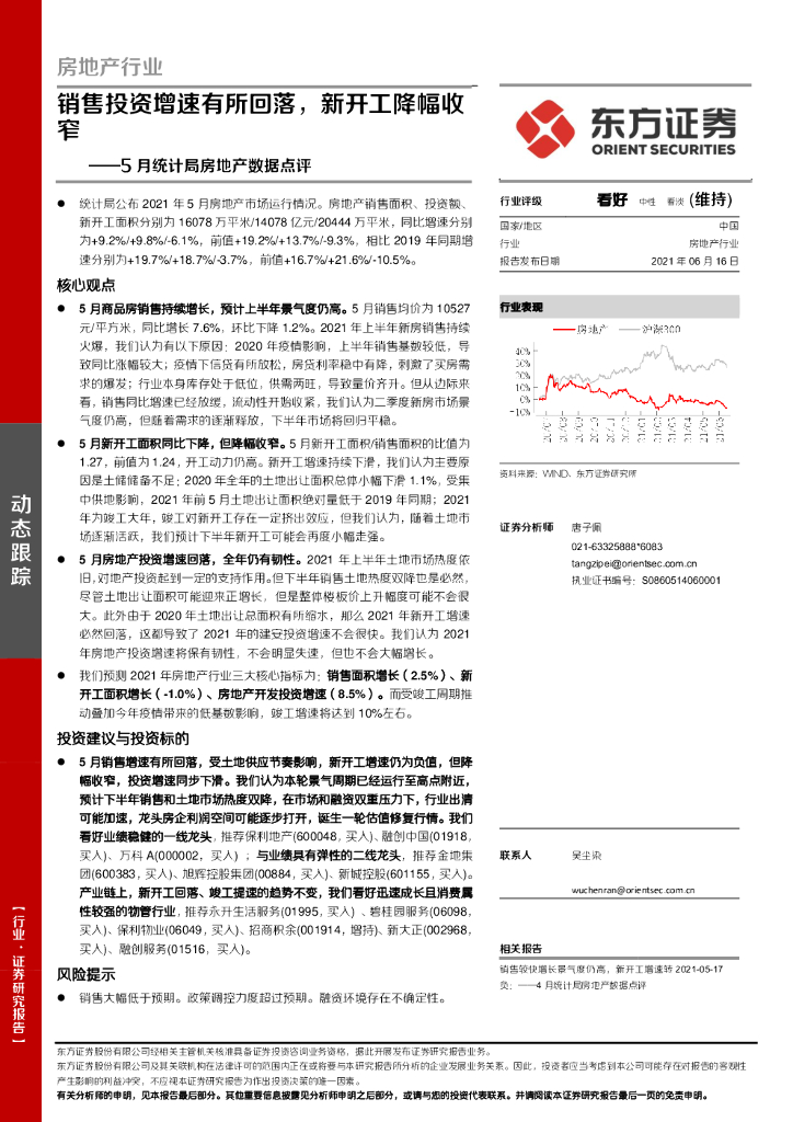 东方证券:5月统计局房地产数据点评:销售投资增速有所回落,新开工降幅收窄.pdf