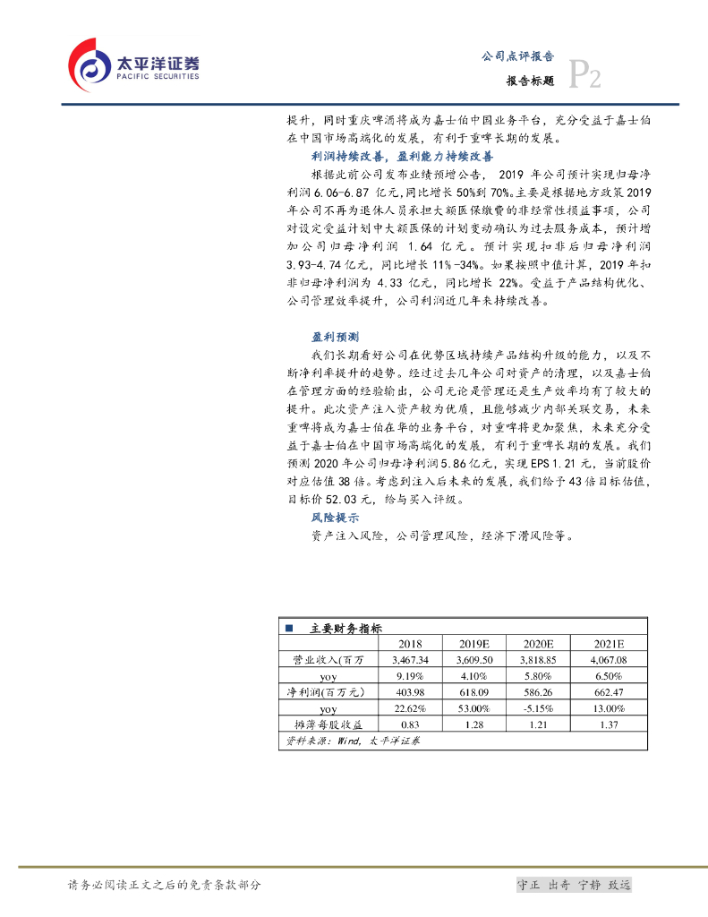太平洋证券:重庆啤酒:大股东解决同业竞争, 拟注入资产较为优质.pdf