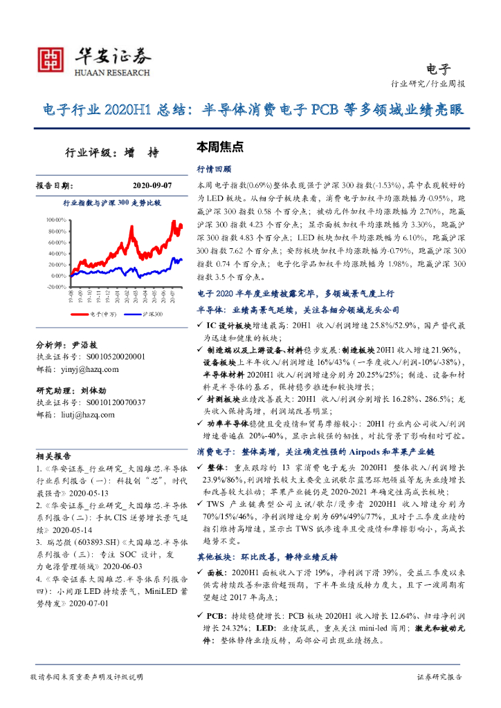 华安证券:电子行业2020H1总结:半导体消费电子PCB等多领域业绩亮眼.pdf