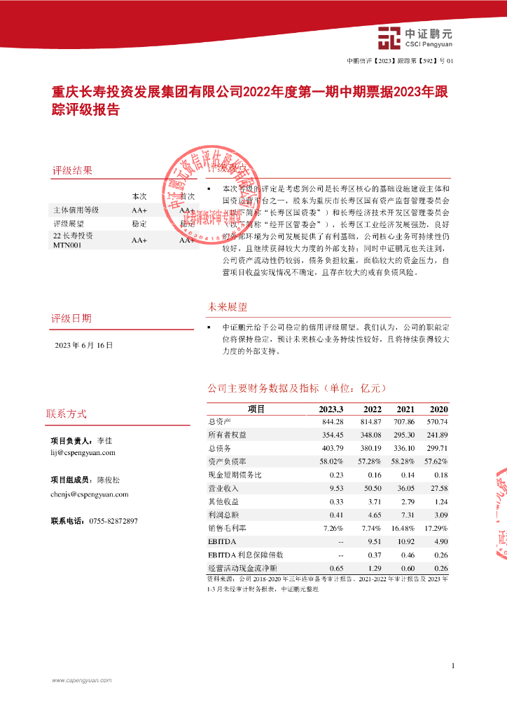 鹏元:重庆长寿投资发展集团有限公司2023年跟踪评级报告-中证鹏元.pdf