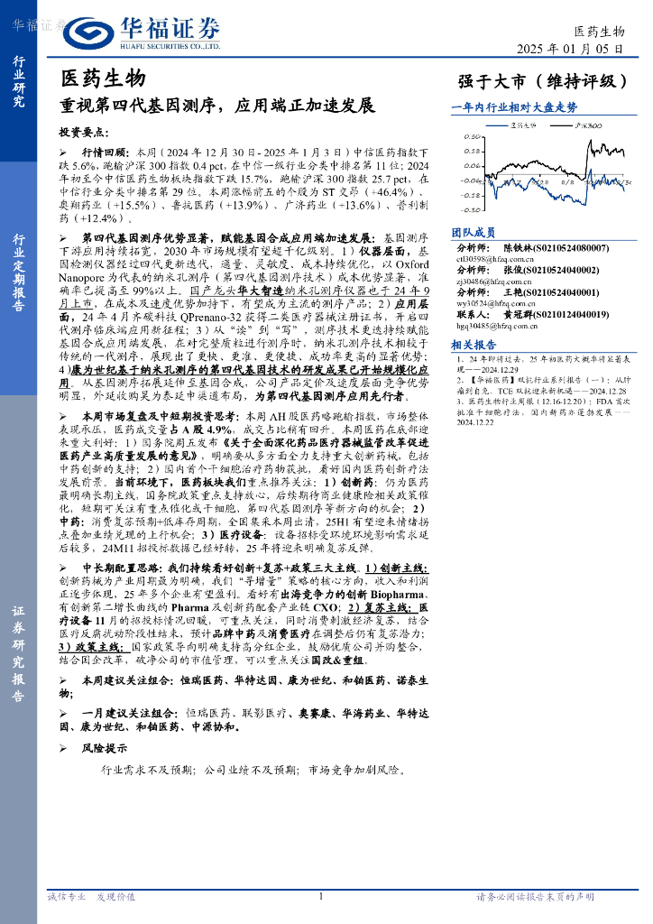 华福证券:医药生物行业定期报告:重视第四代基因测序,应用端正加速发展.pdf