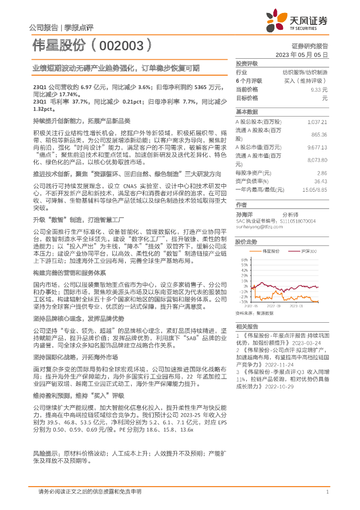 天风证券:伟星股份(002003)-业绩短期波动无碍产业趋势强化,订单稳步恢复可期.pdf