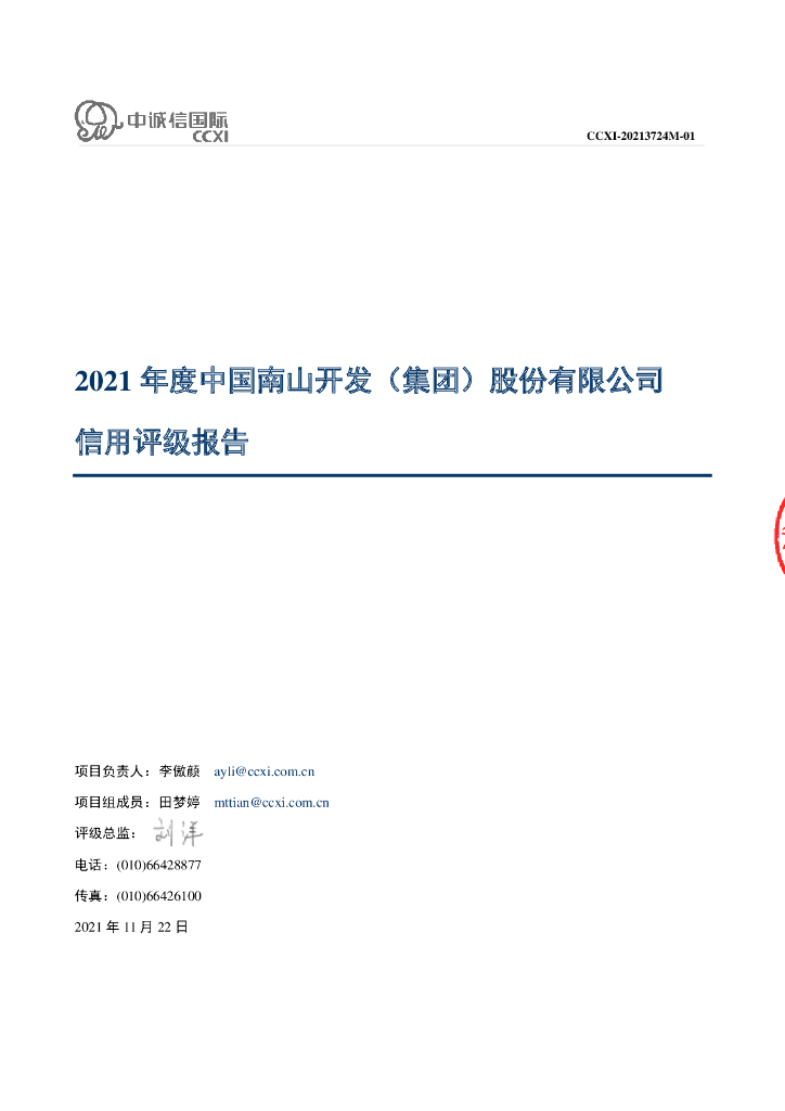 中诚信:中国南山开发(集团)股份有限公司主体信用评级报告.pdf