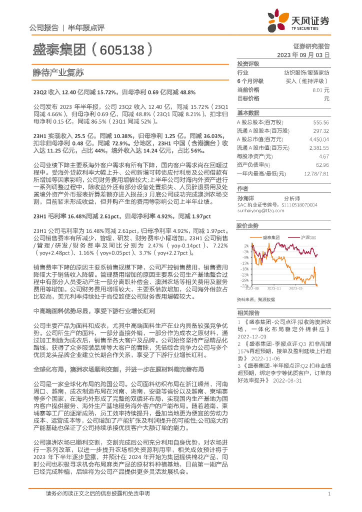 天风证券:盛泰集团(605138)-静待产业复苏.pdf
