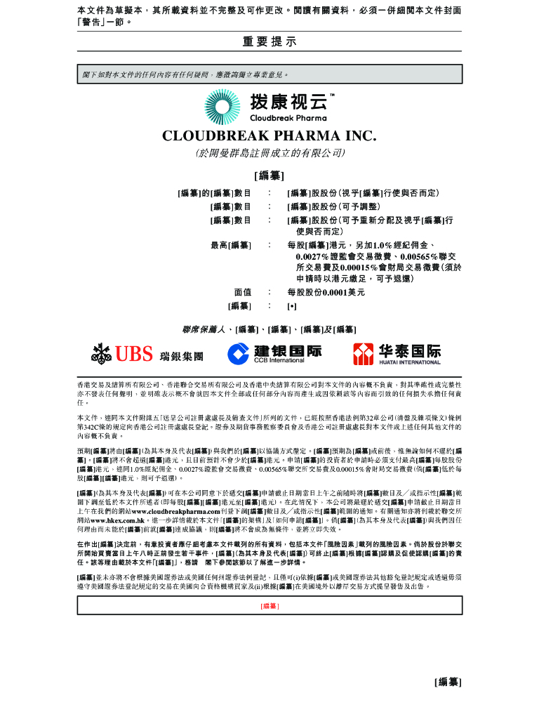 Cloudbreak Pharma拨康视云港交所主板IPO上市招股说明书.pdf