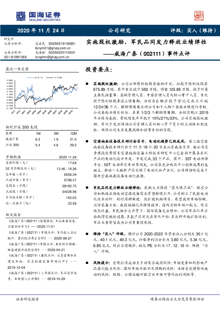 国海证券:威海广泰(002111)-事件点评:实施股权激励,军民品同发力释放业绩弹性.pdf