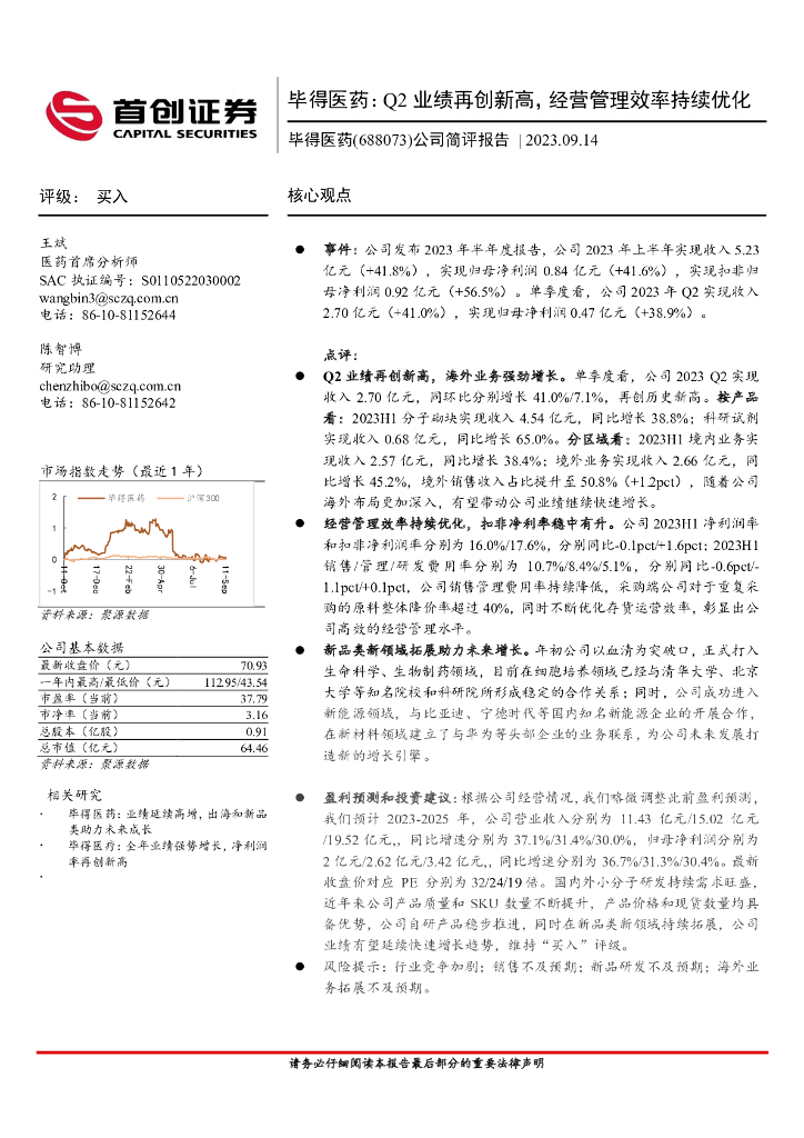首创证券:公司简评报告:毕得医药:Q2业绩再创新高,经营管理效率持续优化.pdf