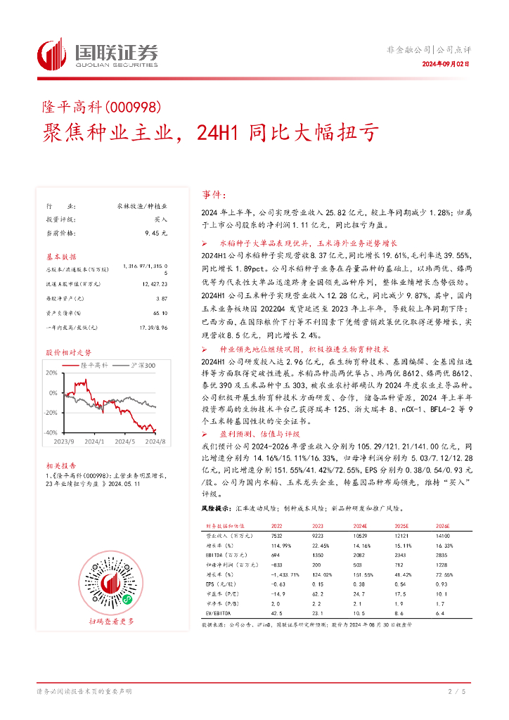 国联证券:隆平高科(000998)-聚焦种业主业,24H1同比大幅扭亏.pdf