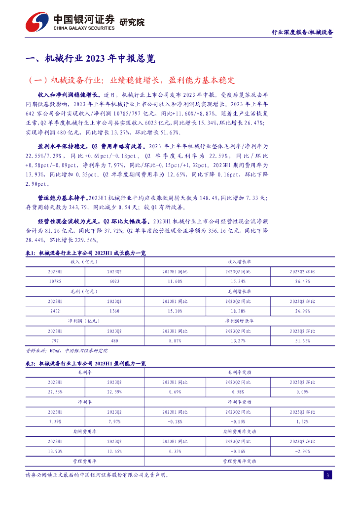 中国银河:机械设备行业2023年中报总结:中报业绩恢复增长,关注顺周期及自主可控.pdf