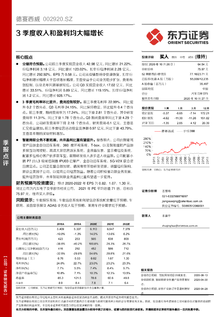东方证券:德赛西威(002920)-3季度收入和盈利均大幅增长.pdf