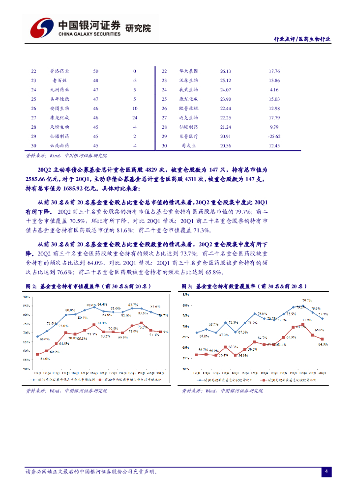 中国银河:医药生物行业:20Q2主动公募医药持仓维持大幅超配状态,重仓集中度有所下降.pdf