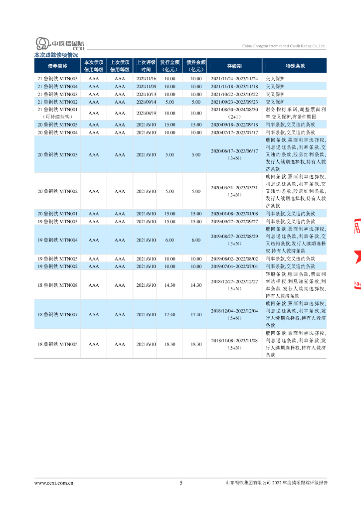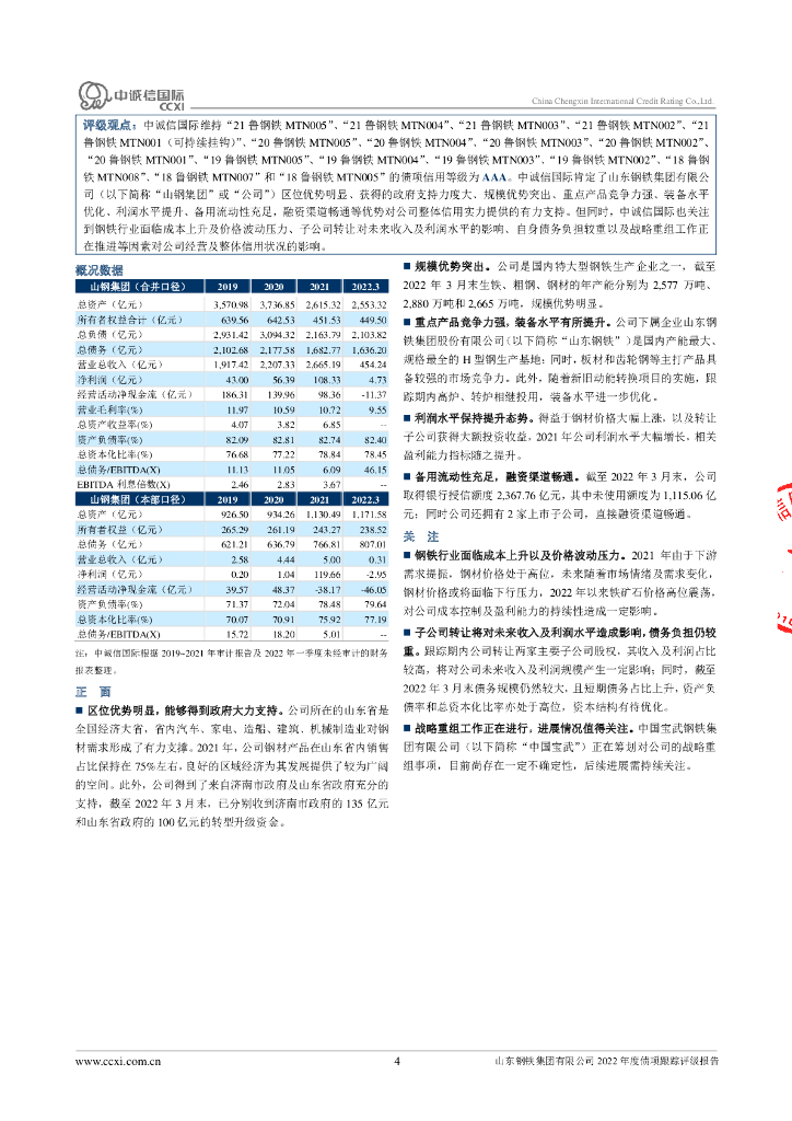 中诚信:山东钢铁集团有限公司2022年度债项跟踪评级报告.pdf