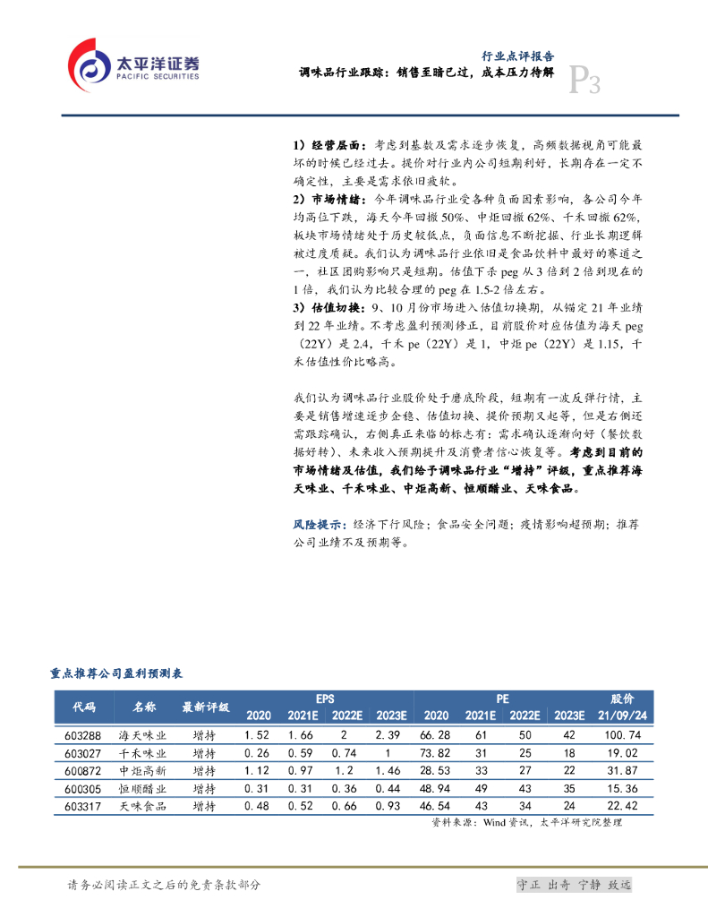 太平洋证券:调味品行业跟踪: 销售至暗已过, 成本压力待解.pdf
