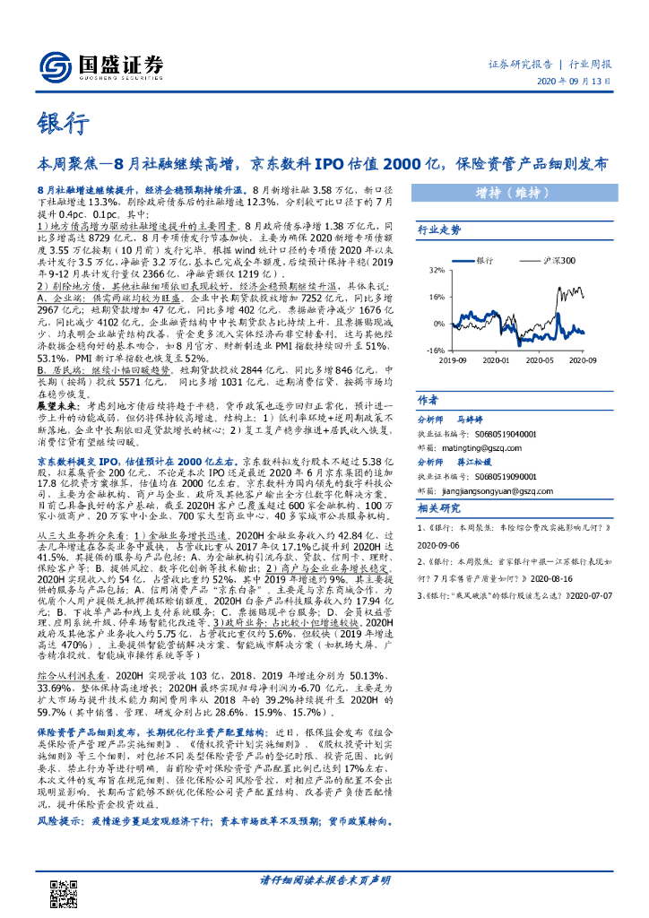 国盛证券:银行本周聚焦—8月社融继续高增,京东数科IPO估值2000亿,保险资管产品细则发布.pdf