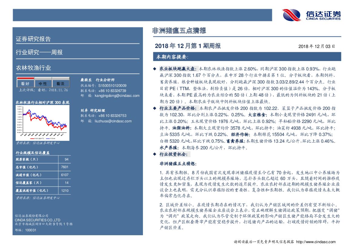 信达证券:农林牧渔2018年12月第1期周报:非洲猪瘟五点猜想.pdf