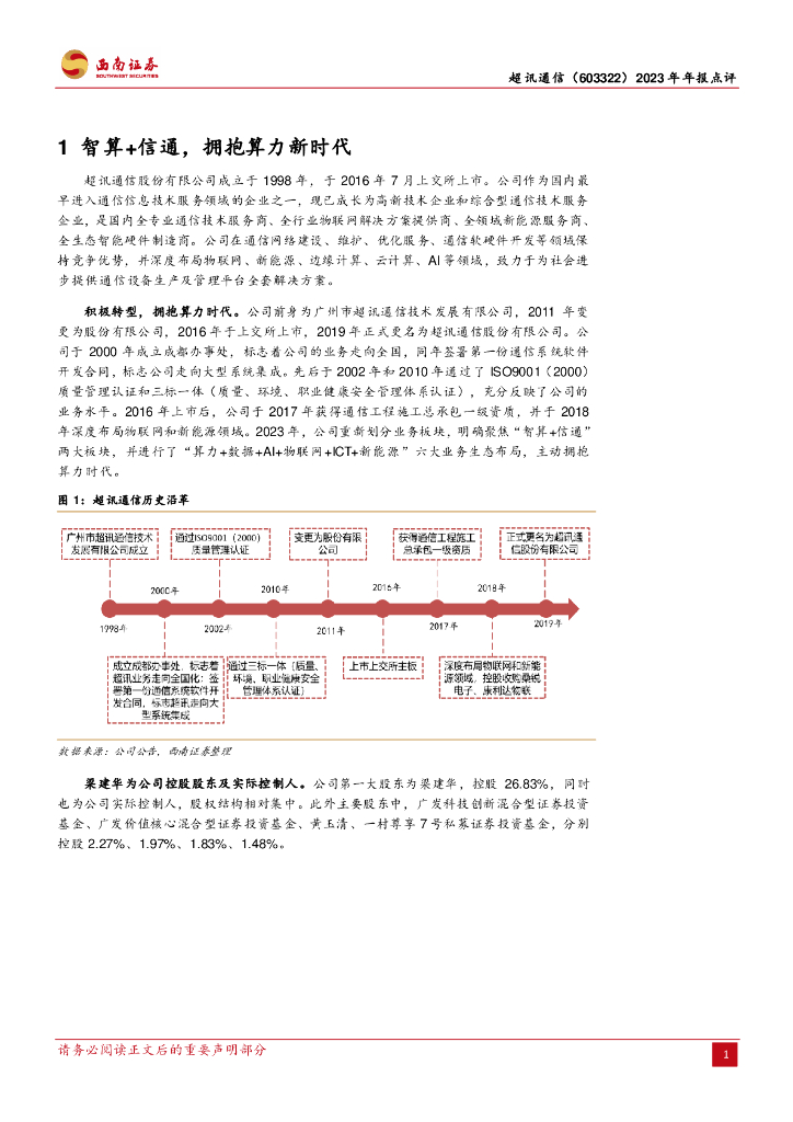 西南证券:超讯通信(603322)-2023年年报点评:业绩符合预期,算力业务加速发展.pdf