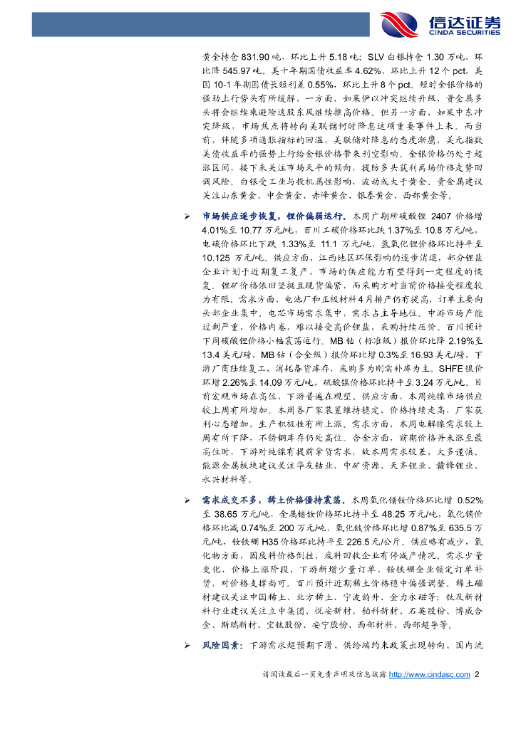 信达证券:有色金属周度报告:地缘政治不确定性增加,继续看好金属价格上行.pdf