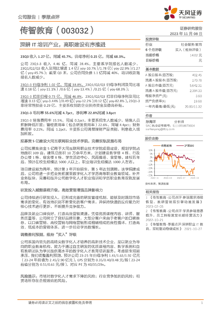 天风证券:传智教育(003032)-深耕IT培训产业,高职建设有序推进.pdf