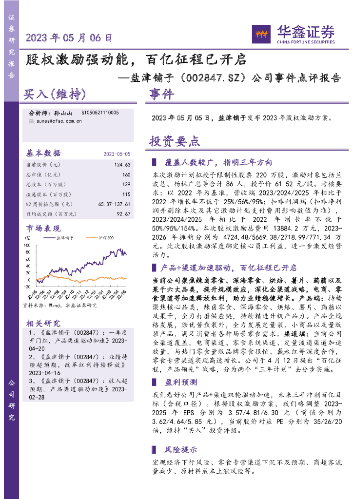华鑫证券:盐津铺子(002847)-公司事件点评报告:股权激励强动能,百亿征程已开启.pdf