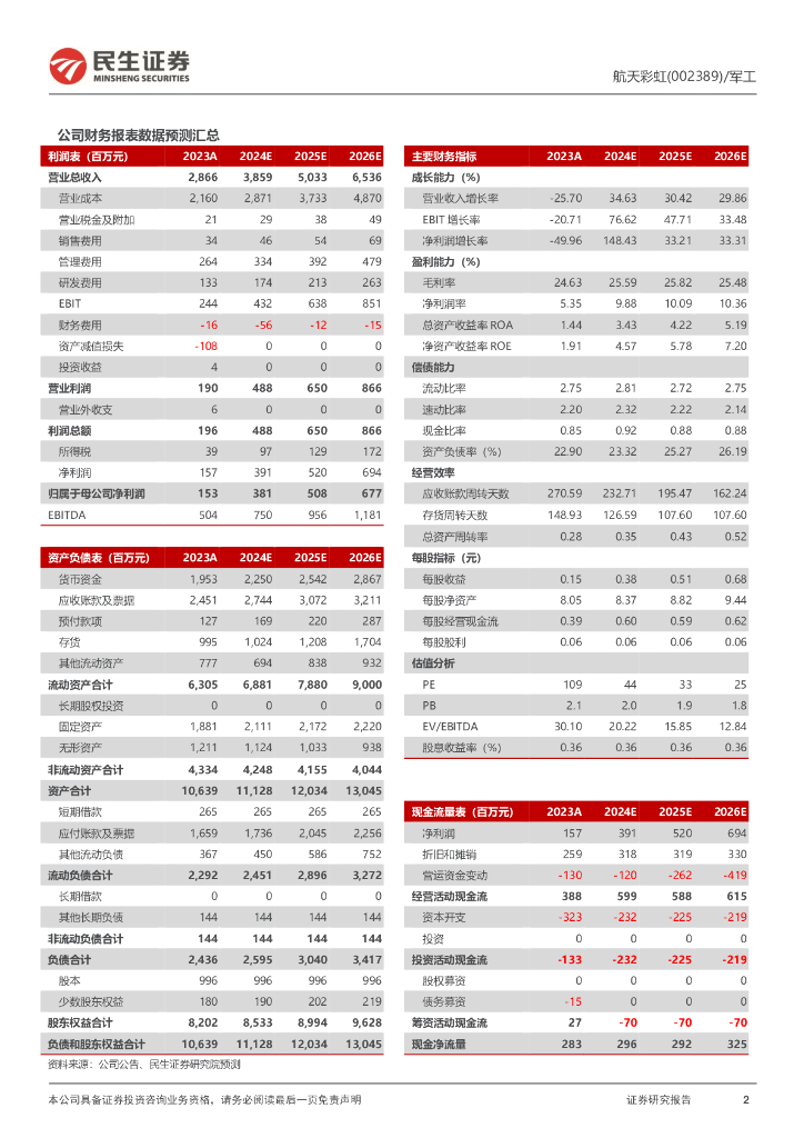 民生证券:航天彩虹(002389)-2024年一季报点评:膜产品利润亏损影响业绩;低空经济增强发展活力.pdf
