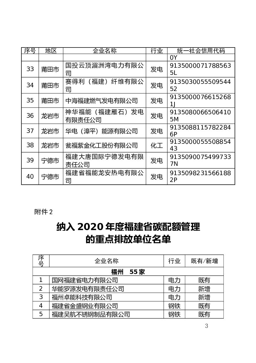 福建省纳入2019-2020年全国碳配额管理 的重点排放单位名单.doc