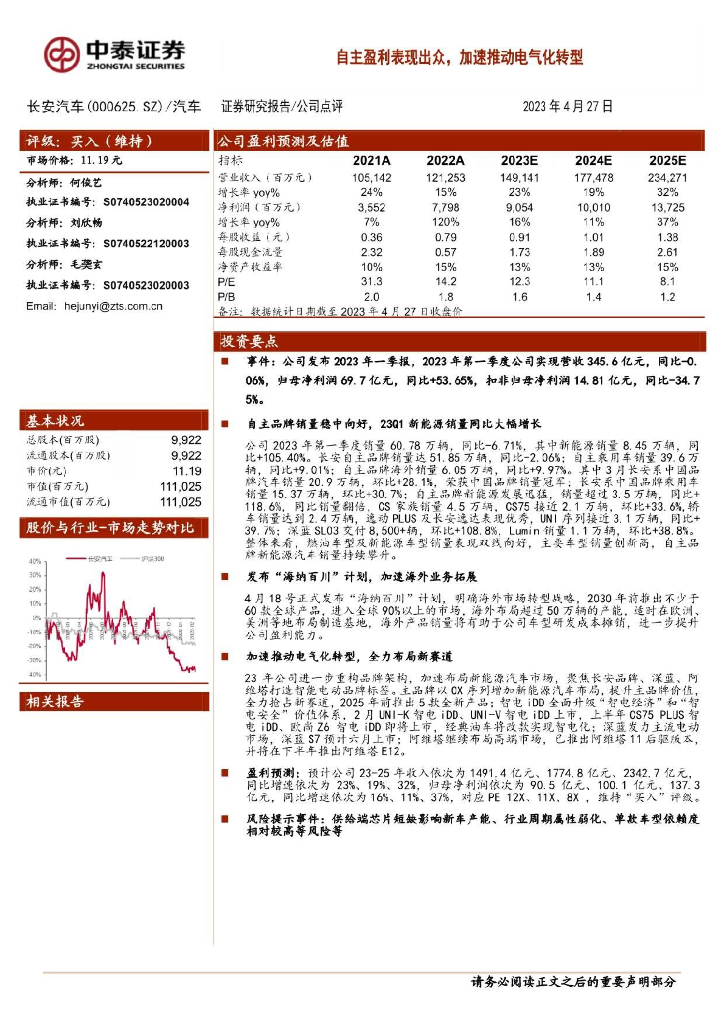 中泰证券:长安汽车(000625)-自主盈利表现出众,加速推动电气化转型.pdf