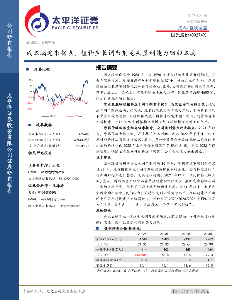 太平洋证券:国光股份(002749)-成本端迎来拐点,植物生长调节剂龙头盈利能力回归本真.pdf