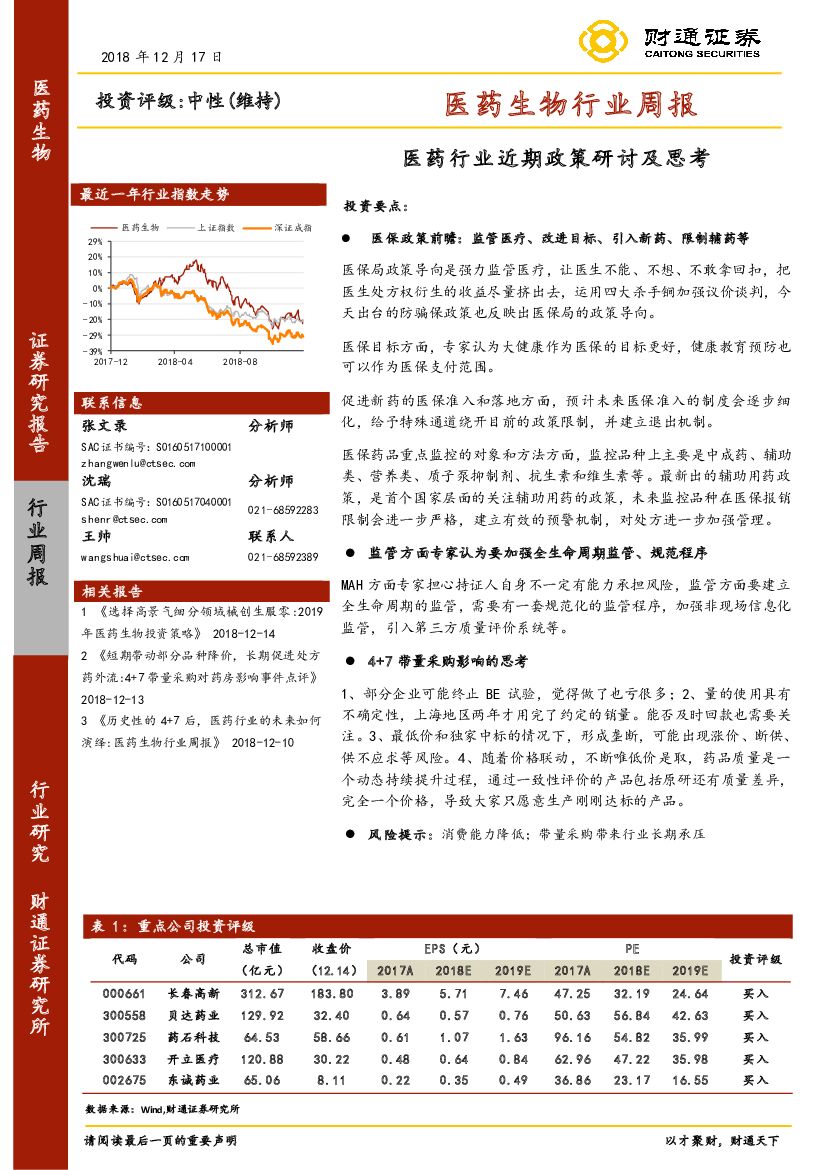 财通证券:医药生物行业周报:医药行业近期政策研讨及思考.pdf