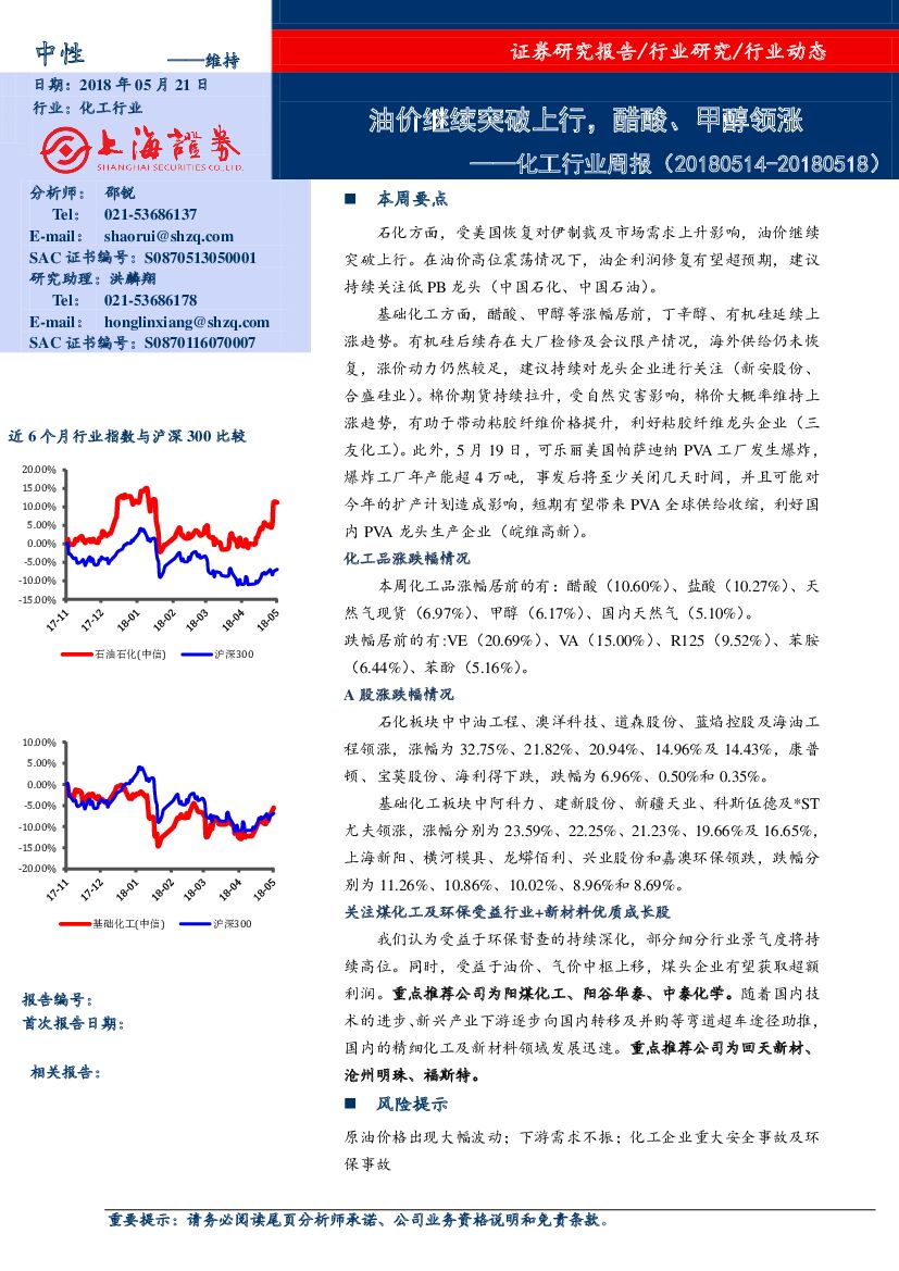 上海证券:化工行业周报:油价继续突破上行,醋酸、甲醇领涨.pdf