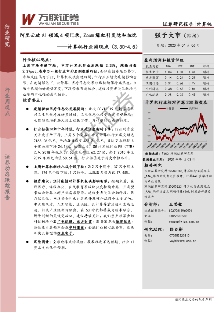 万联证券:计算机行业周观点:阿里云破AI领域4项记录,Zoom爆红引发隐私担忧.pdf