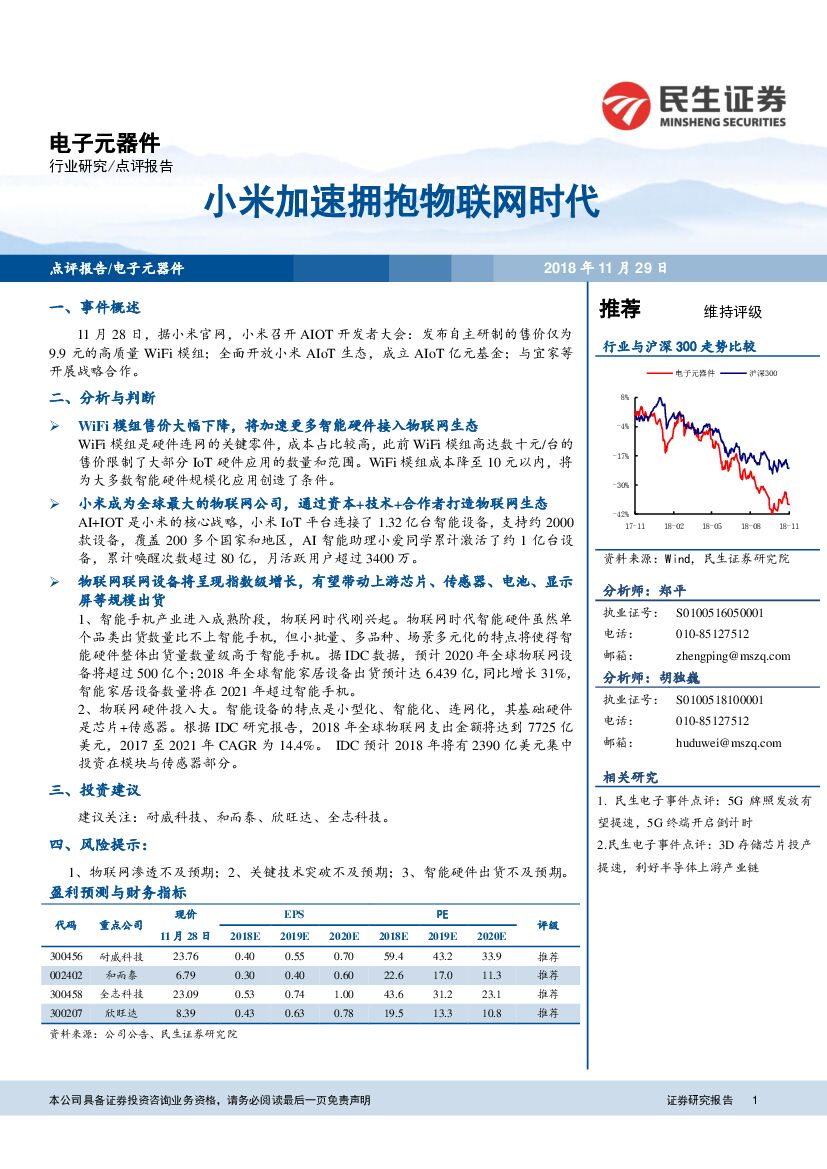 民生证券:电子元器件:小米加速拥抱物联网时代.pdf