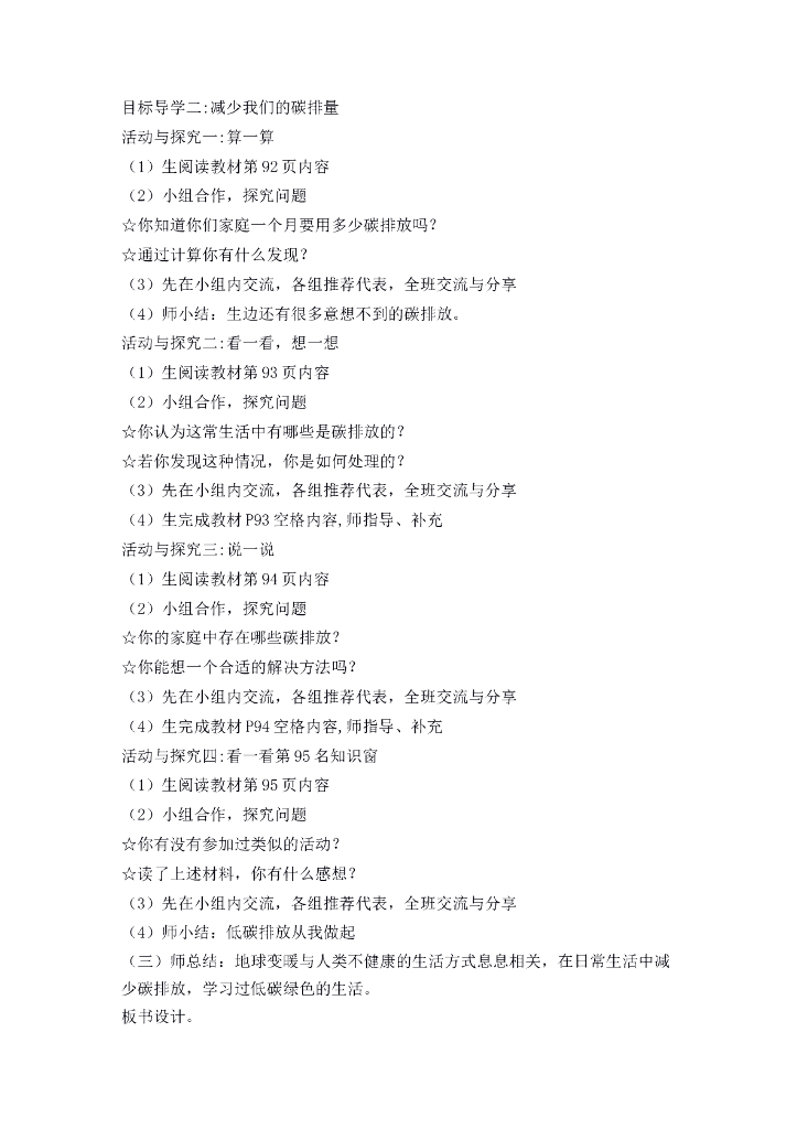 道德与法制12 低碳生活每一天 教案1-2课时.doc