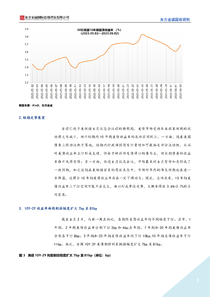 东方金诚:债务上限危机解除叠加经济数据走弱,10 年期美债收益率震荡回落——美债专题跟踪(2023.05.29-2023.06.02).pdf