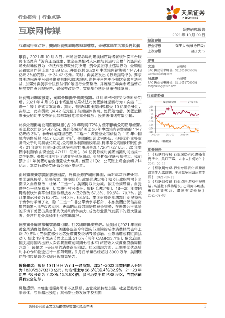 天风证券:互联网传媒-互联网行业点评:美团处罚落地释放悲观情绪,无碍本地生活龙头再起航.pdf