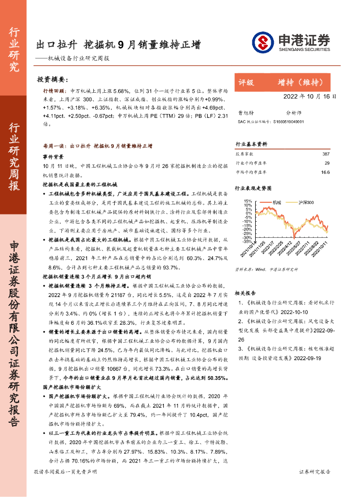 申港证券:机械设备行业研究周报:出口拉升 挖掘机9月销量维持正增.pdf