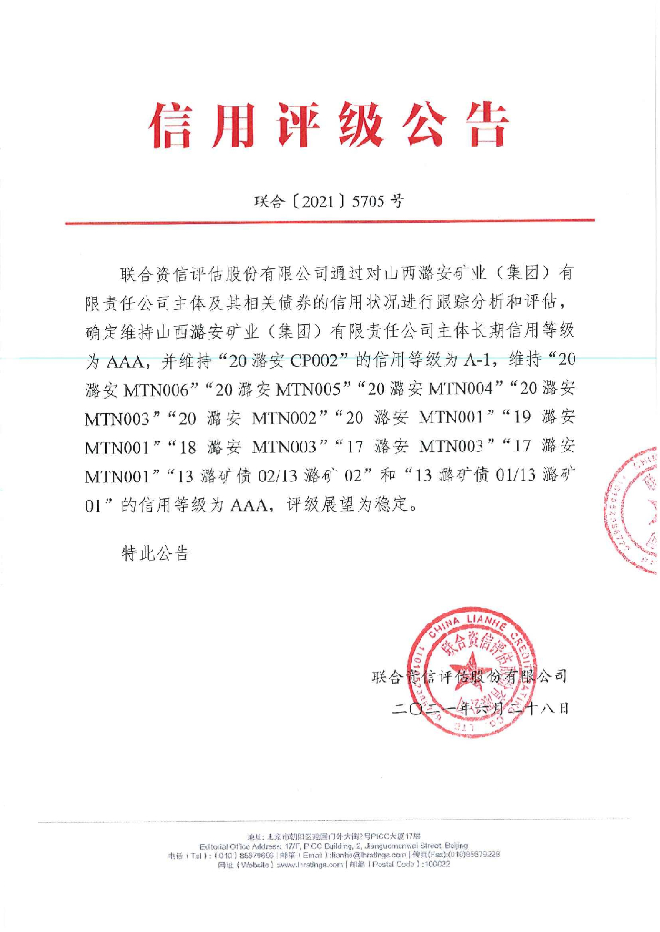 联合资信:山西潞安矿业(集团)有限责任公司2021年主体跟踪评级报告.pdf
